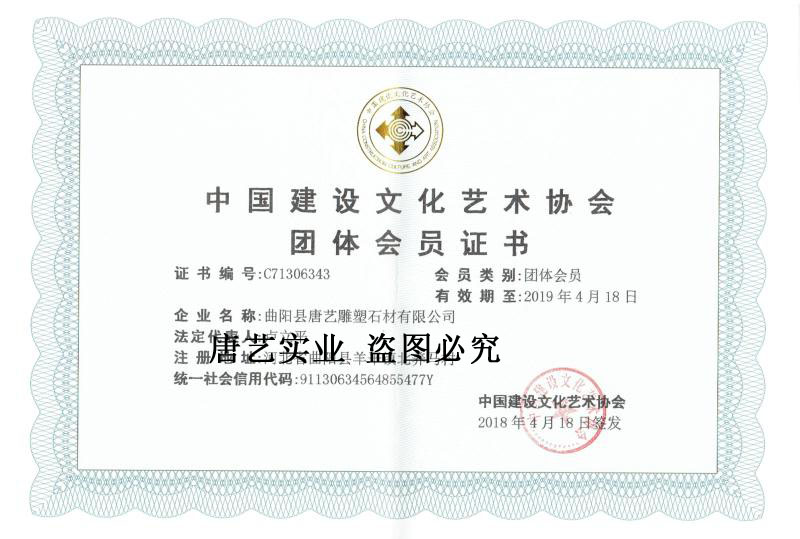 >> 走进唐艺 >> 中国建设文化艺术协会团体会员证