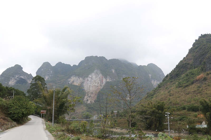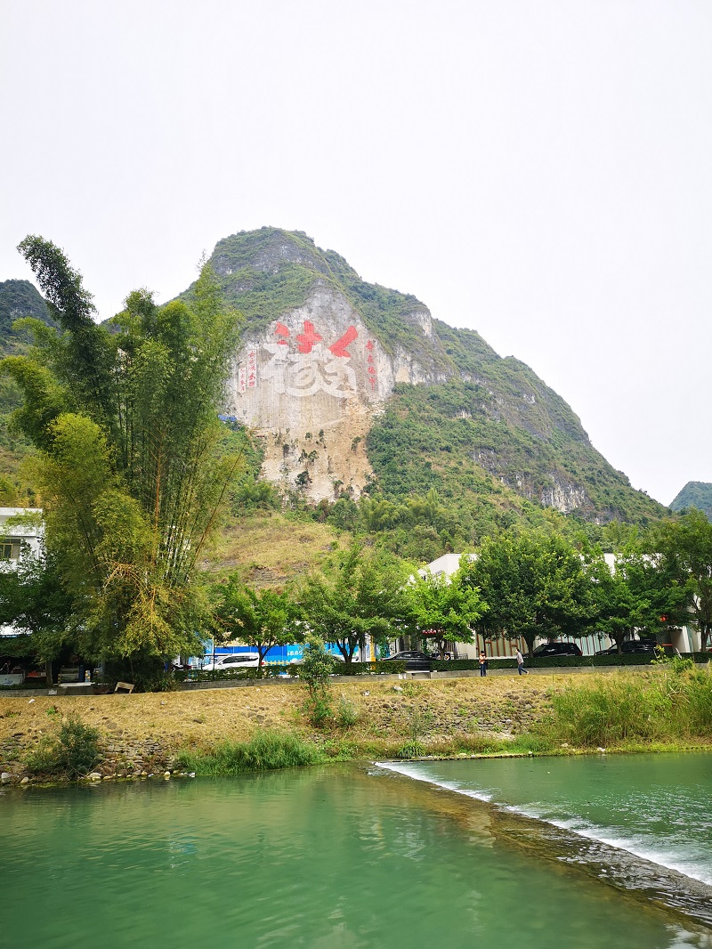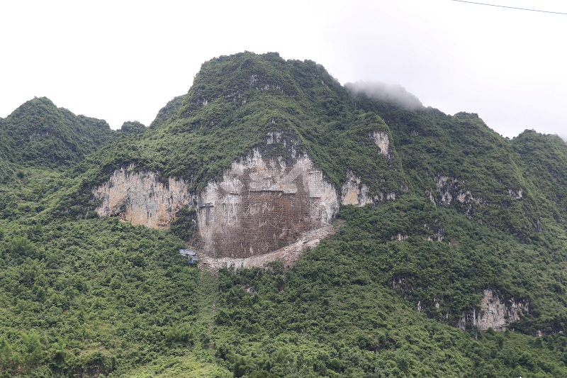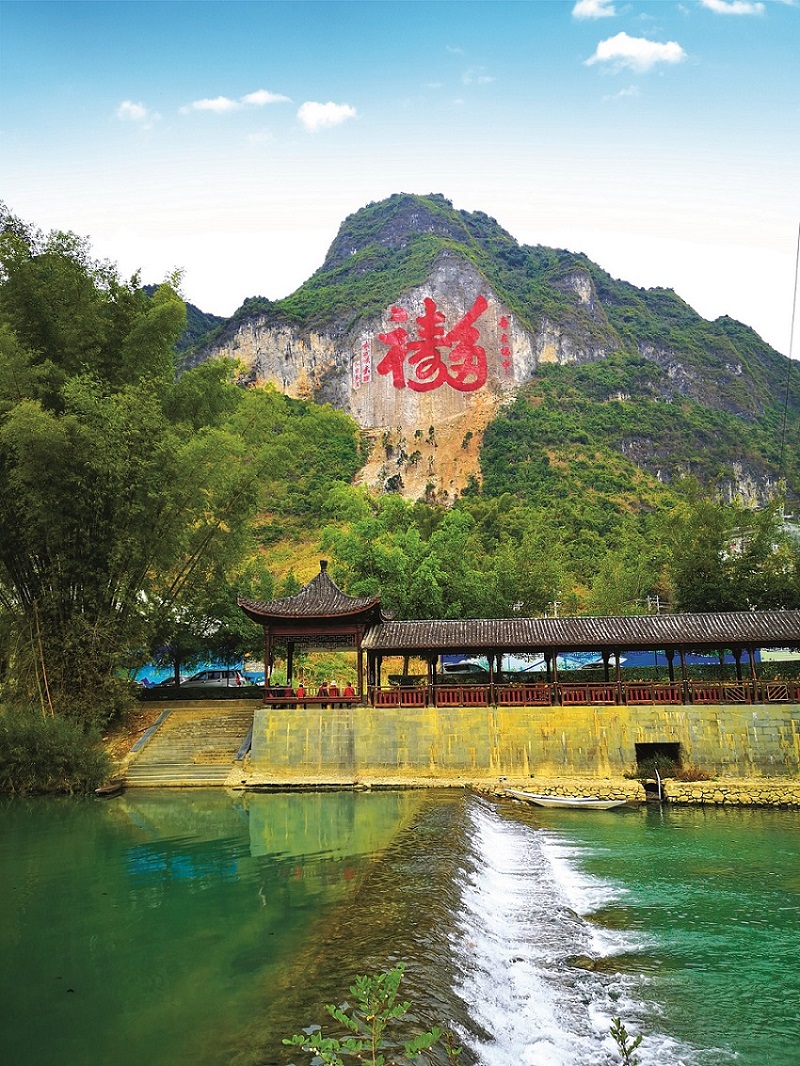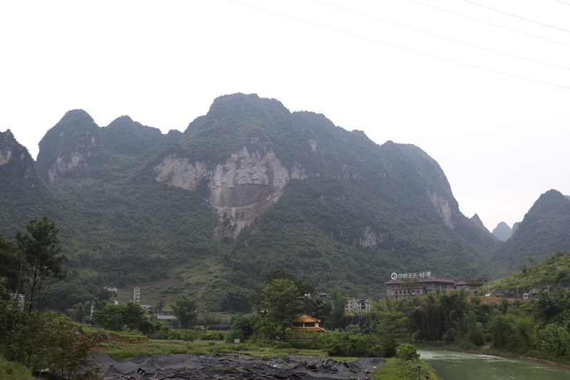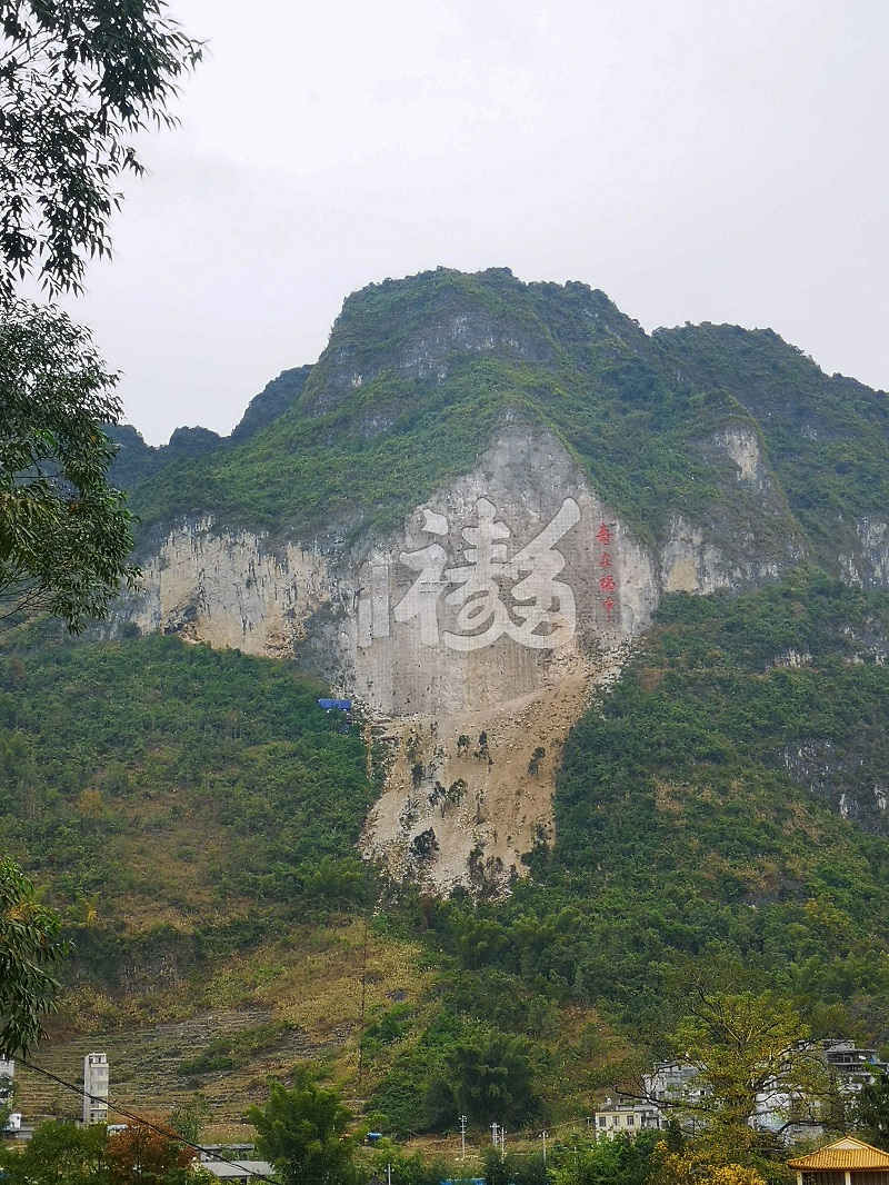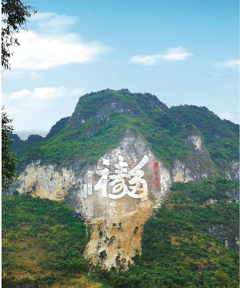 广西省河池市巴马瑶族自治县长寿村摩崖石刻《福》字 高99米 长129米